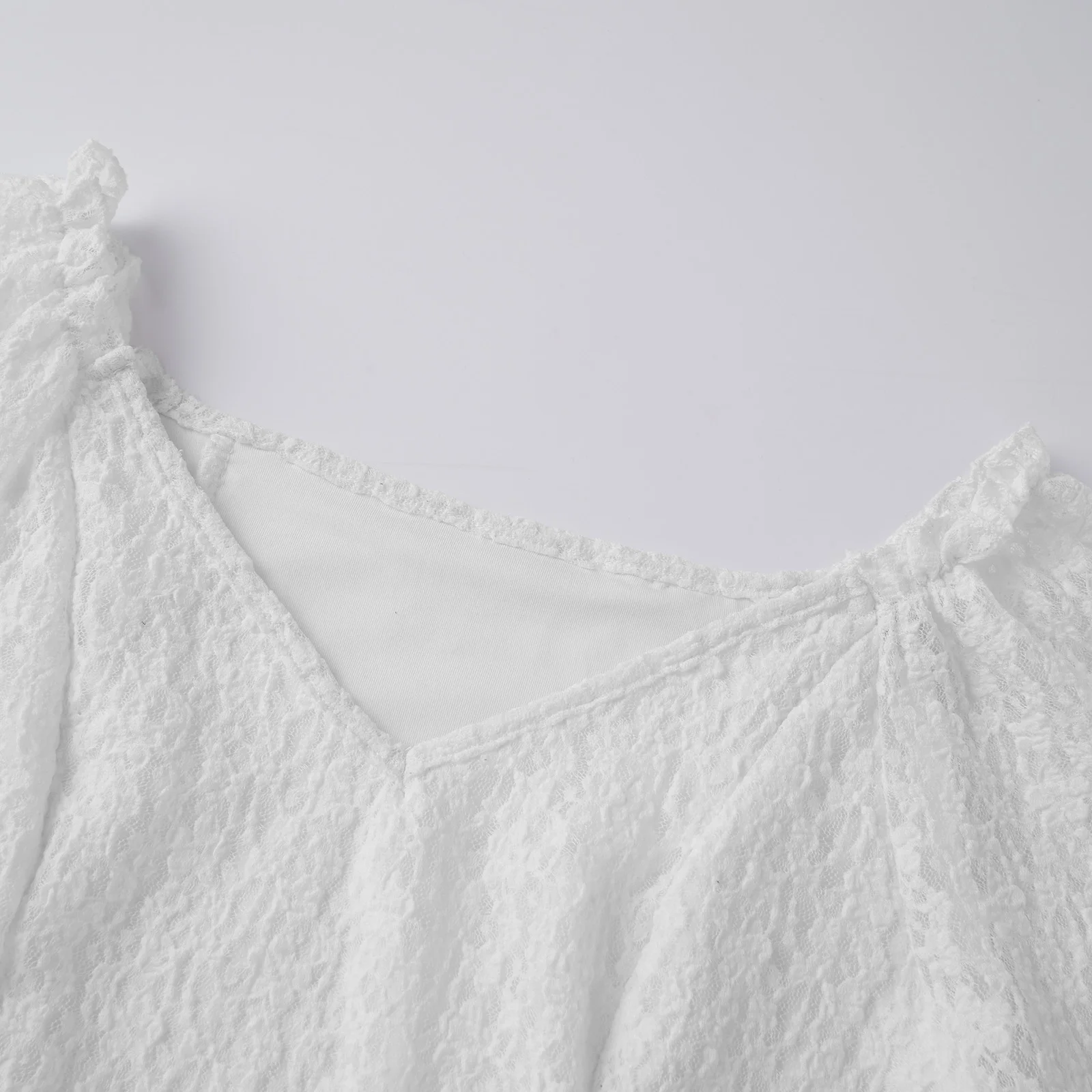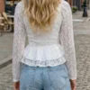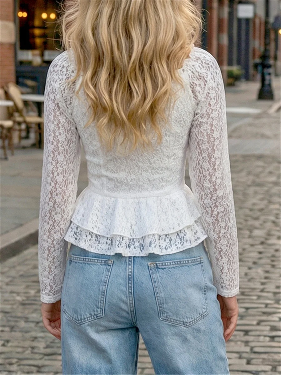 Women Lace Floral Blouse Long Sleeve V Neck Layered Ruffled Going Out Tops Trendy Spring Fall Shirts Streetwear