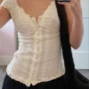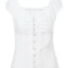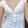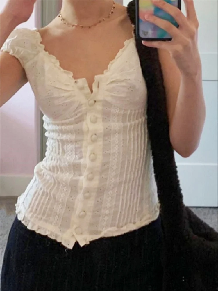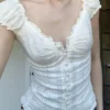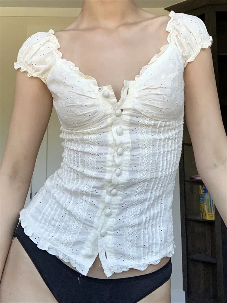 Women Summer Blouse Short Sleeve Square Neck Button Down Tops Retro Kawaii Fairycore Y2K Shirts Female