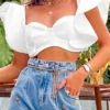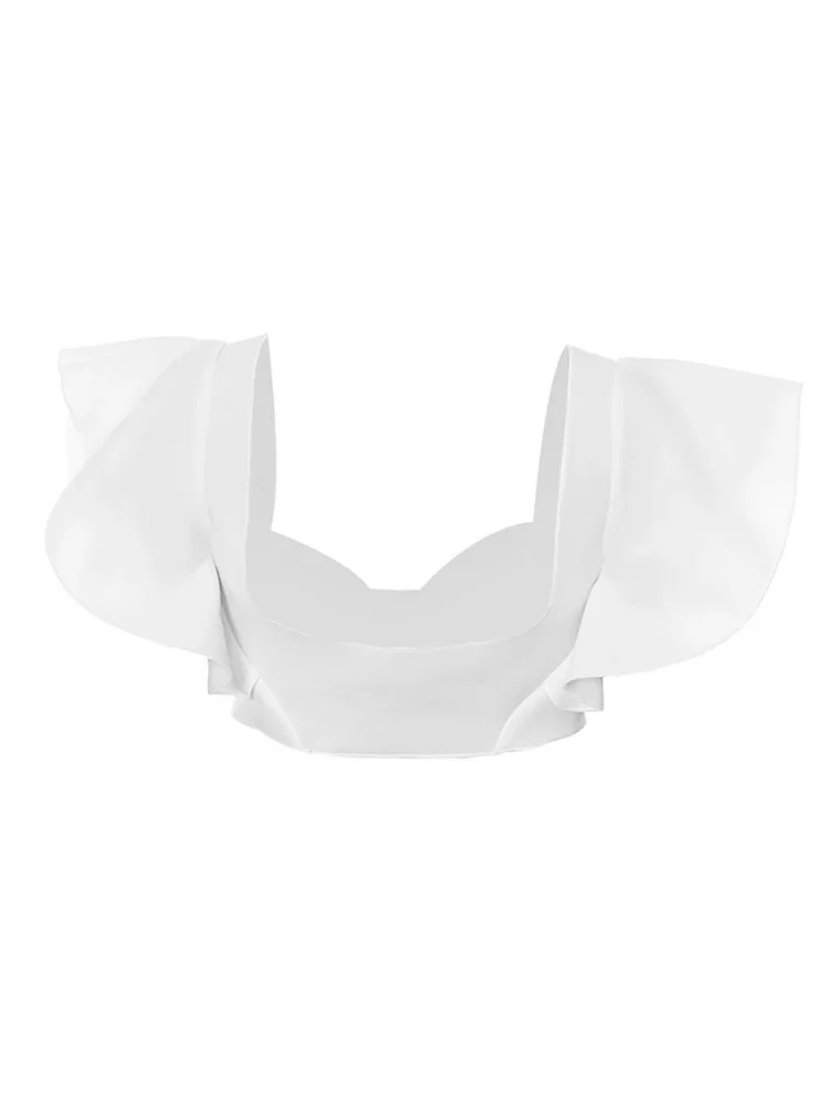 Women Summer Tops and Blouses Ruffle Sleeve Square Neck Corset Cropped Tops Fashion Retro Casual Shirts 2024 New