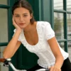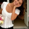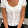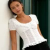 Women Summer Tops Y2K Aesthetic Retro Casual Clothes Short Sleeve Square Neck Lace Ruffle Tops and Blouses Shirts